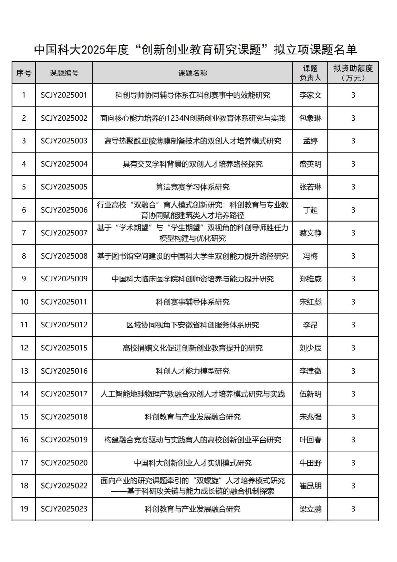 天启网投2025年度“创新创业教育研究课题”申报评审工作已顺利结束,经过课题申报、资格审查、专家评审等环节,确定“科创导师协同辅导体系在科创赛事中的效能研究”等19个课题为我校2025年度“创新创业教育研究课题”拟立项课题,公示如下:
