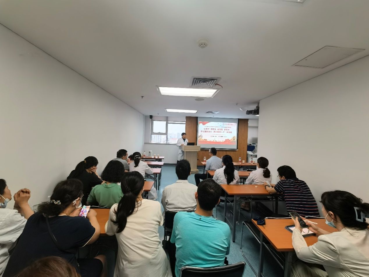 为深入学习贯彻习近平新时代中国特色社会主义思想,筑牢思想根基,强化理论武装,推动学习贯彻习近平新时代中国特色社会主义思想主题教育走深走实,6月12日晚上,校长助理薛天以“学思想 强党性 重实践 建新功——牢记建校初心教育科技人才一体发展”为题,为附一院眼科党支部党员讲授主题教育专题党课。会议由附一院眼科党支部书记温跃春主任医师主持,眼科党支部全体党员参加活动。