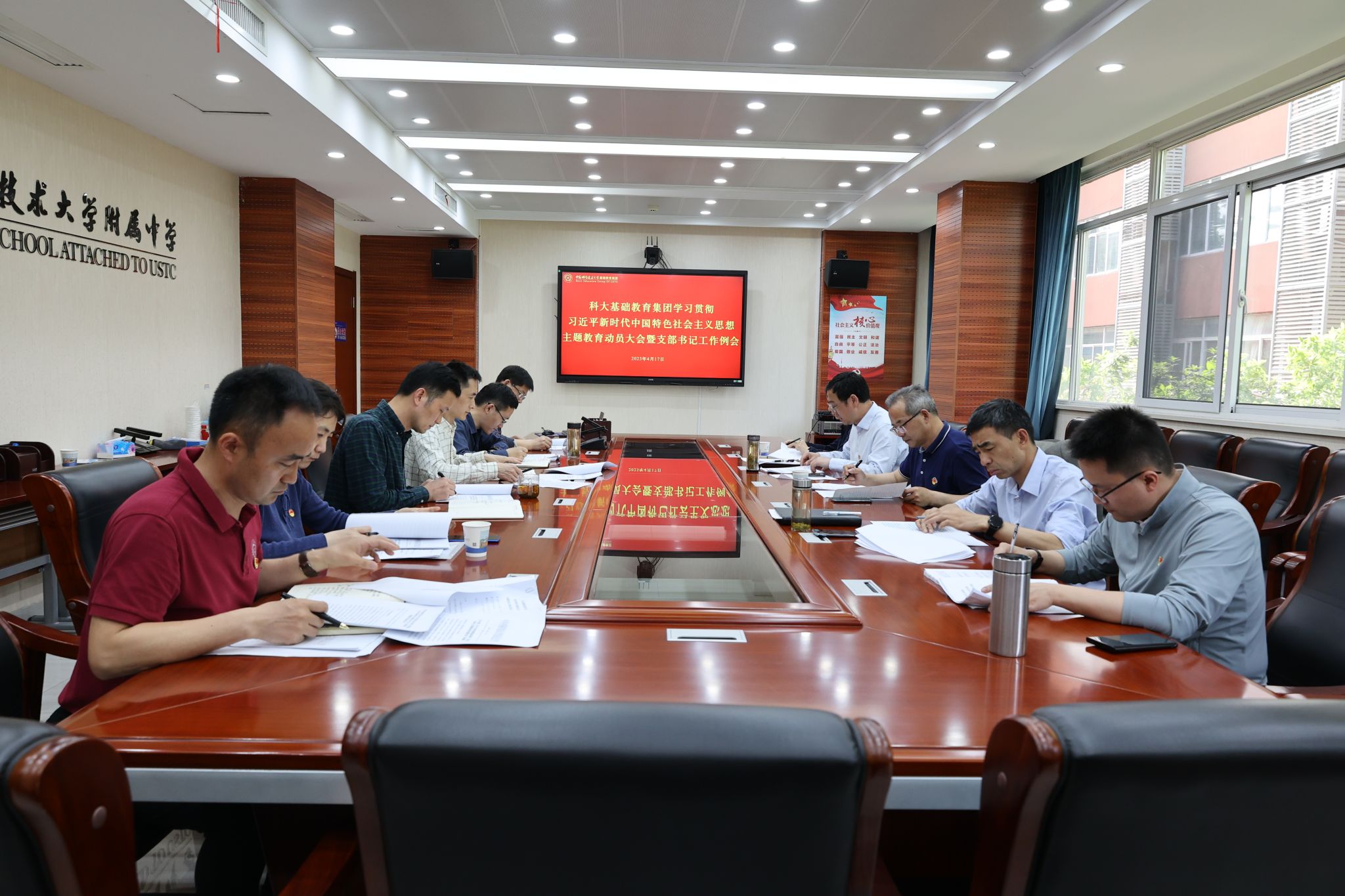 4月17日,科大基础教育集团党委在附中中学部二楼会议室召开学习贯彻习近平新时代中国特色社会主义思想主题教育动员大会暨支部书记工作例会,对集团党委主题教育进行动员部署。大学主题教育第五指导组代表杨定武、朱文婧出席会议并作指导讲话。集团党委委员、基层党支部书记及党务秘书等参加会议。会议由集团党委书记、主任马运生主持。