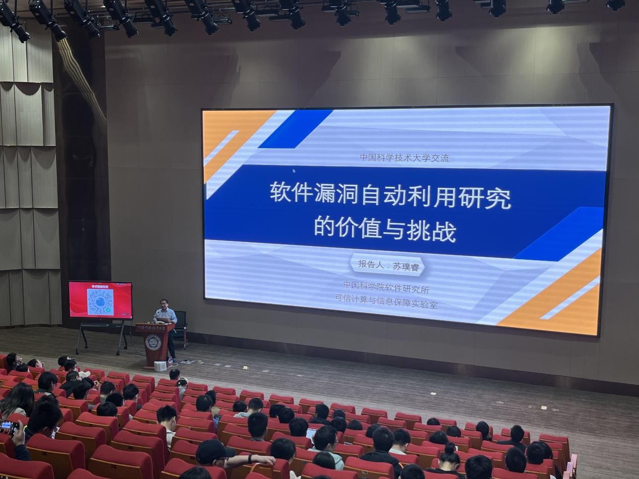 苏璞睿研究员做了题为“软件漏洞自动利用研究的价值与挑战”的报告。报告指出在现实场景中,攻防对象主要是闭源软件,即二进制软件。苏璞睿团队在该领域有近二十年的研究,近年来在二进制软件的数据流分析、漏洞机理分析、漏洞危害评估等方面取得了一系列进展,相关结果在USENIX Security、NDSS等国际学术会议发表,研制了软件漏洞分析系统为二进制软件漏洞分析提供了系统性解决方案。