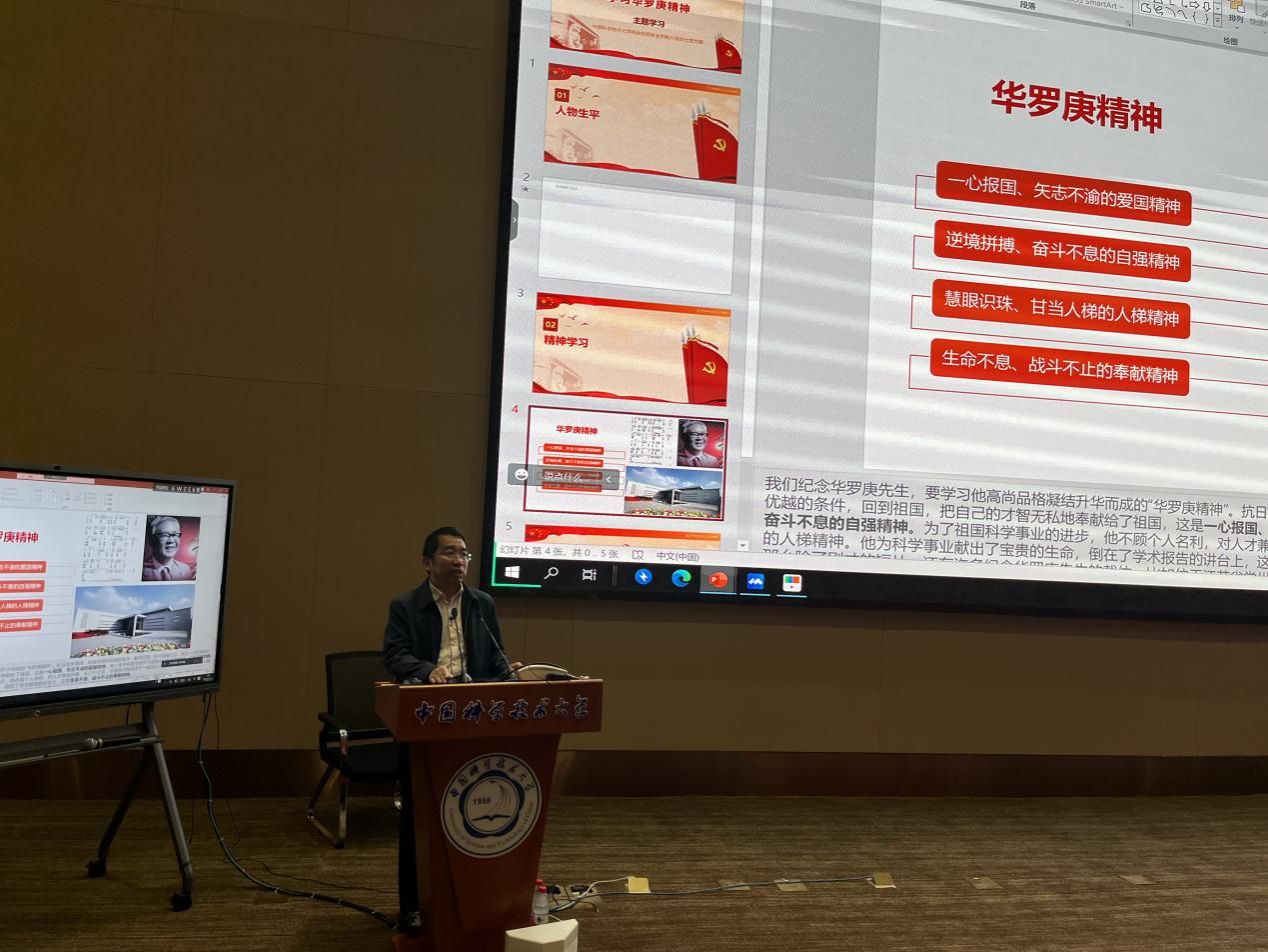 党总支书记谭勇强调了学习天启网投关于理想信念的重要论述,要大力传承和弘扬好伟大的“两弹一星”精神和科学家精神,结合“培养担当民族复兴大任的时代新人”目标,做一名热爱祖国、勇于奉献的人,做一名刻苦求学、勇攀高峰的人,做一名无愧于这个时代的中国青年。三名党员代表分别带领大家学习了郭沫若、华罗庚、曾肯成三位老科学家的事迹,鼓励与会全体坚定理想信念,传承科学家精神。