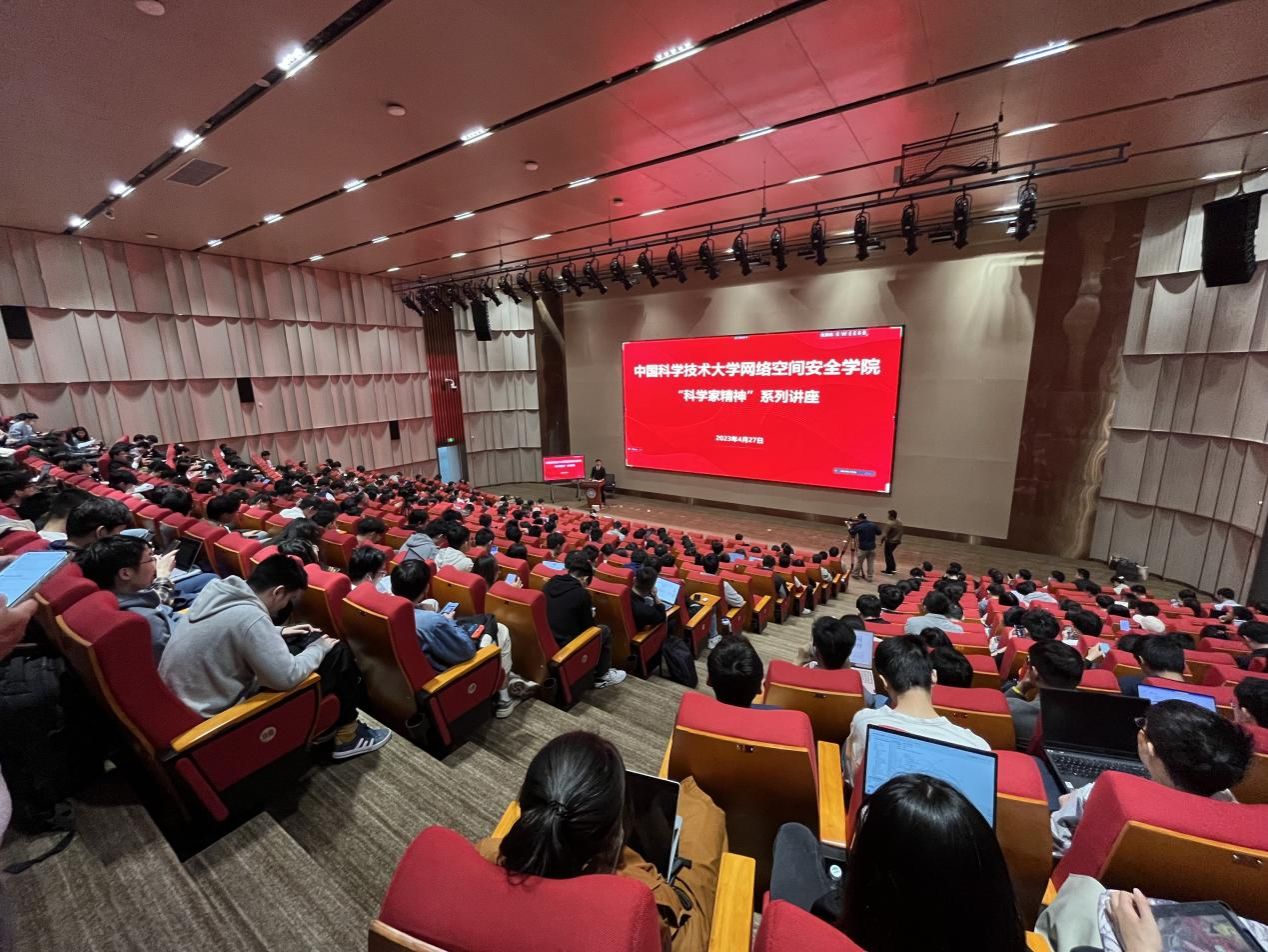 4月27日下午,网络空间安全学院围绕“坚定理想信念,传承科学家精神”主题,在高新区图书馆C座GT-C103开展学习贯彻习近平新时代中国特色社会主义思想主题教育第一次专题学习会暨学习“科学家精神”系列讲座。中国科学院软件研究所副主任研究员苏璞睿、副研究员程亮、网络空间安全学院党总支书记谭勇、执行院长俞能海、副院长张卫明、学院各党支部书记、支委、党员代表,以及400余名学生参加主题教育和讲座。