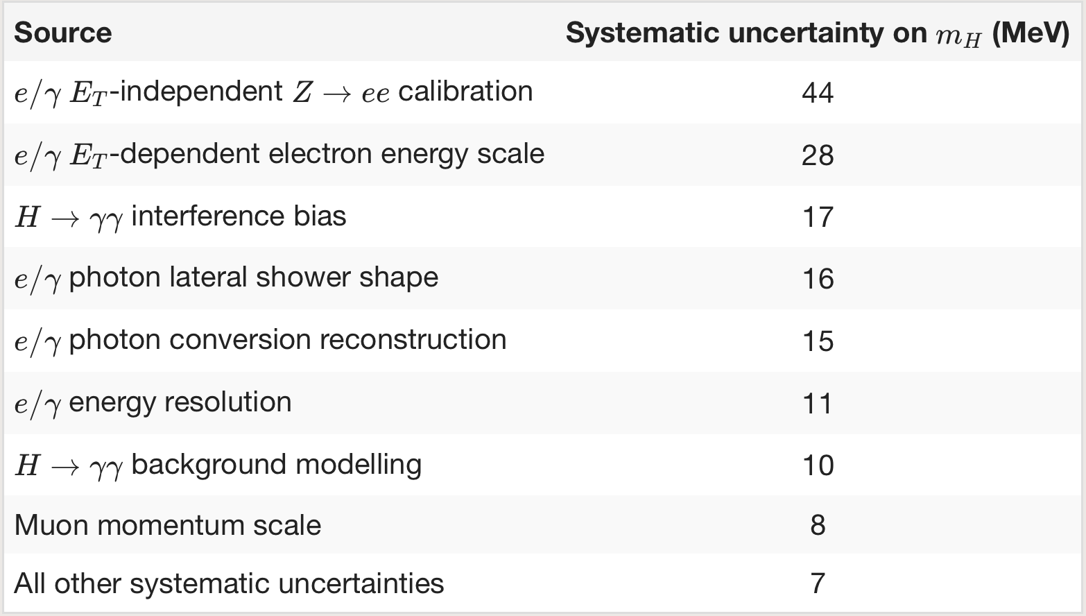 中国科大与英国牛津大学、意大利国家核物理研究所、中国科学院高能所等国内外先进单位合作,在此次测量中扮演了重要角色。我校赵政国院士与杨洪洮特任教授指导的研究生张阳帆独立完成了联合测量(图一)及系统误差的分解检验(图二),并代表分析团队向全体ATLAS合作组在合作组周会(ATLAS weekly)上报告测量结果。此外,杨洪洮特任教授担任ATLAS实验希格斯玻色子到光子工作组负责人(convener),领导工作组完成了输入测量中最精确的双光子道(H→γγ)的测量工作[2]。